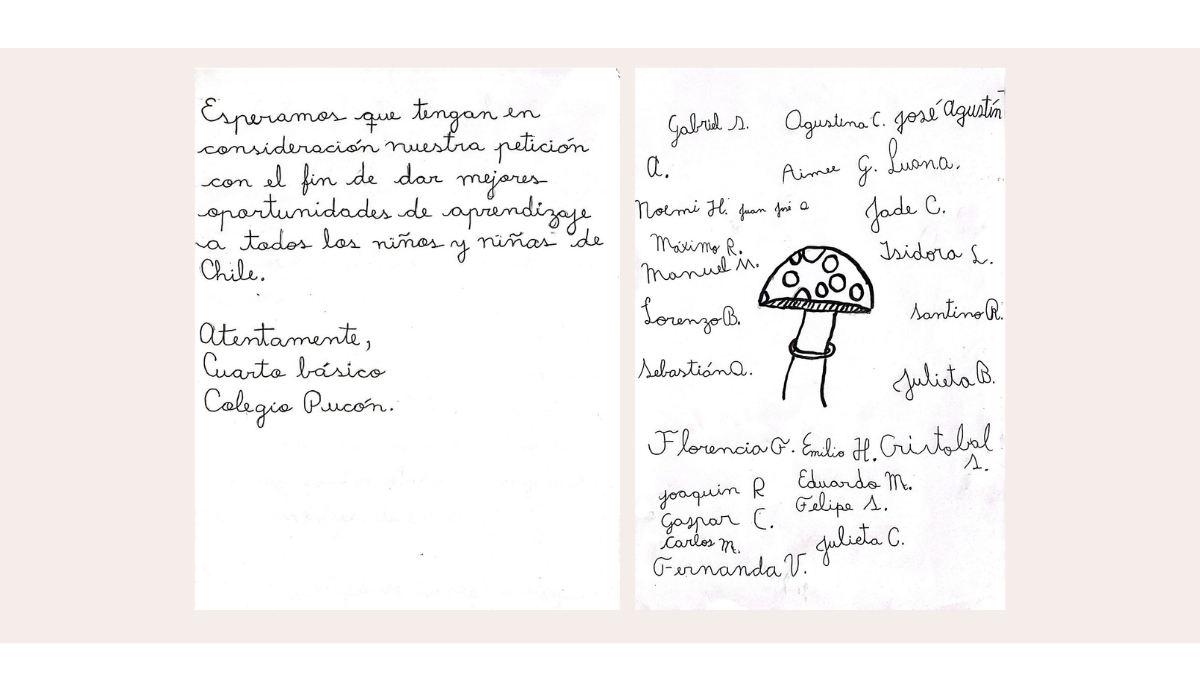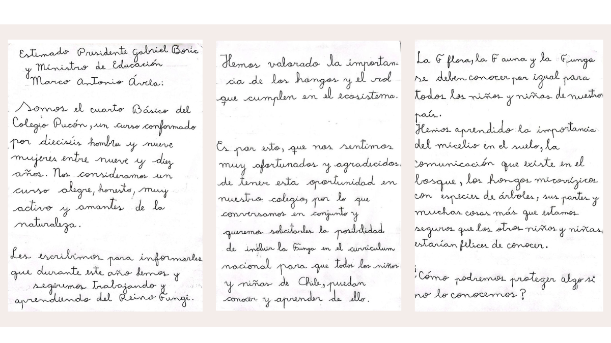 25 estudiantes de Pucón, de entre 9 y 10 años, escribieron una carta al presidente Gabriel Boric para pedirle formalmente que todos los niños y niñas de Chile tengan la oportunidad de "aprender y conocer" sobre los hongos.